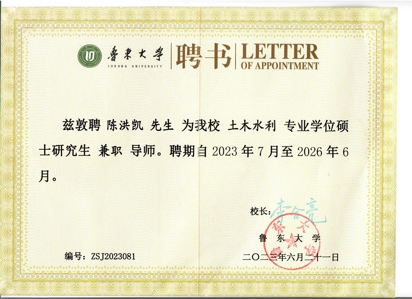 beat365官网俄罗斯自然科学院外籍院士陈洪凯教授受聘鲁东大学土木水利专业硕士生导师