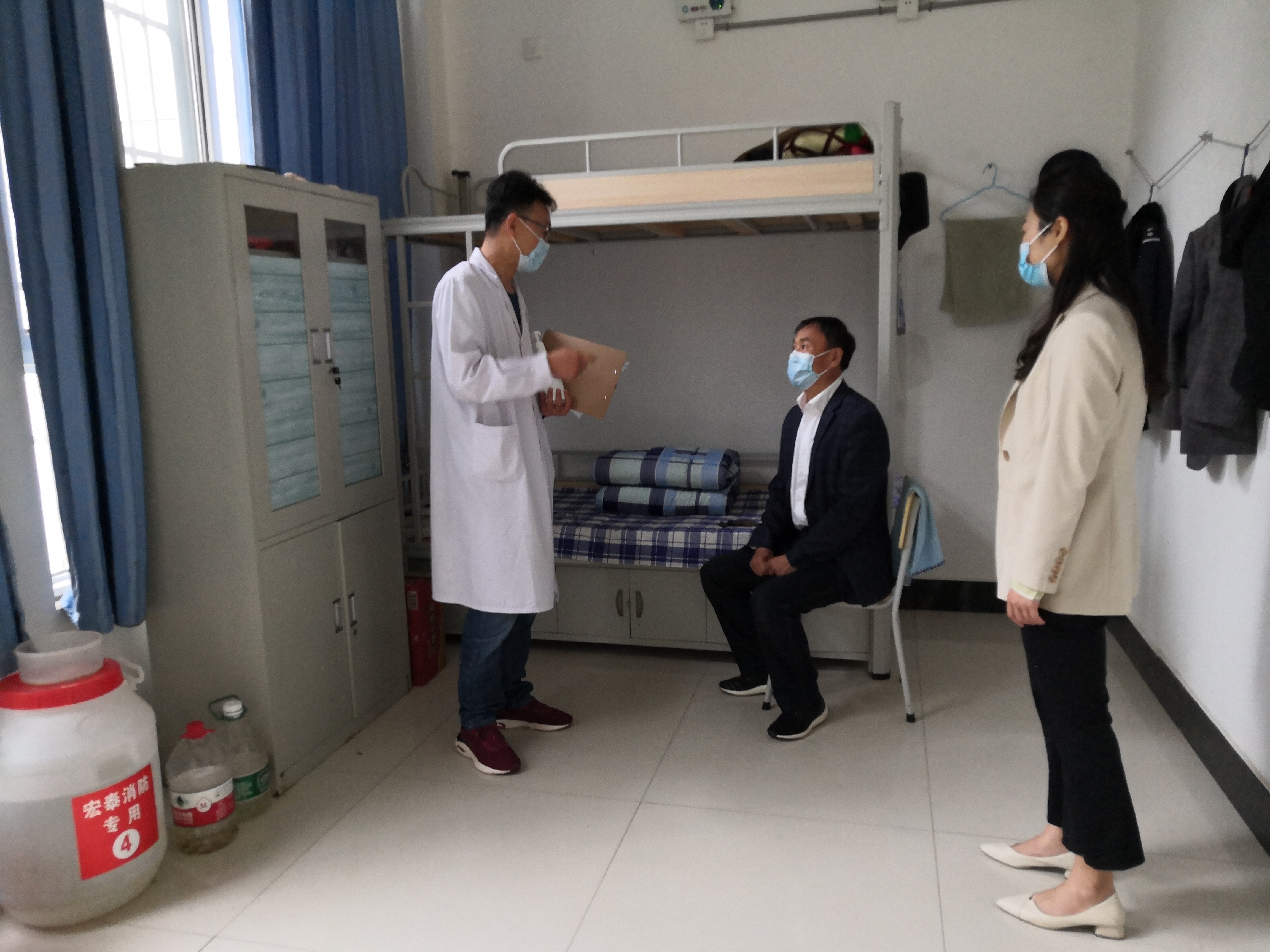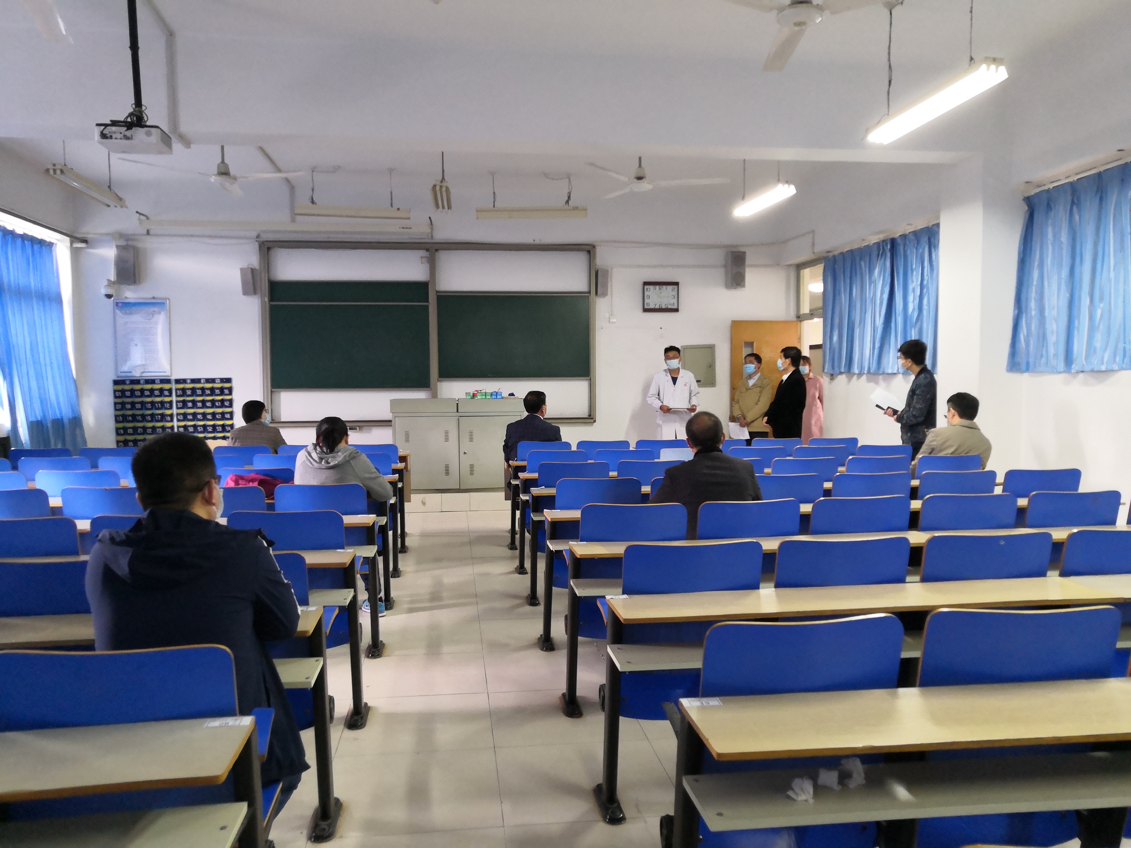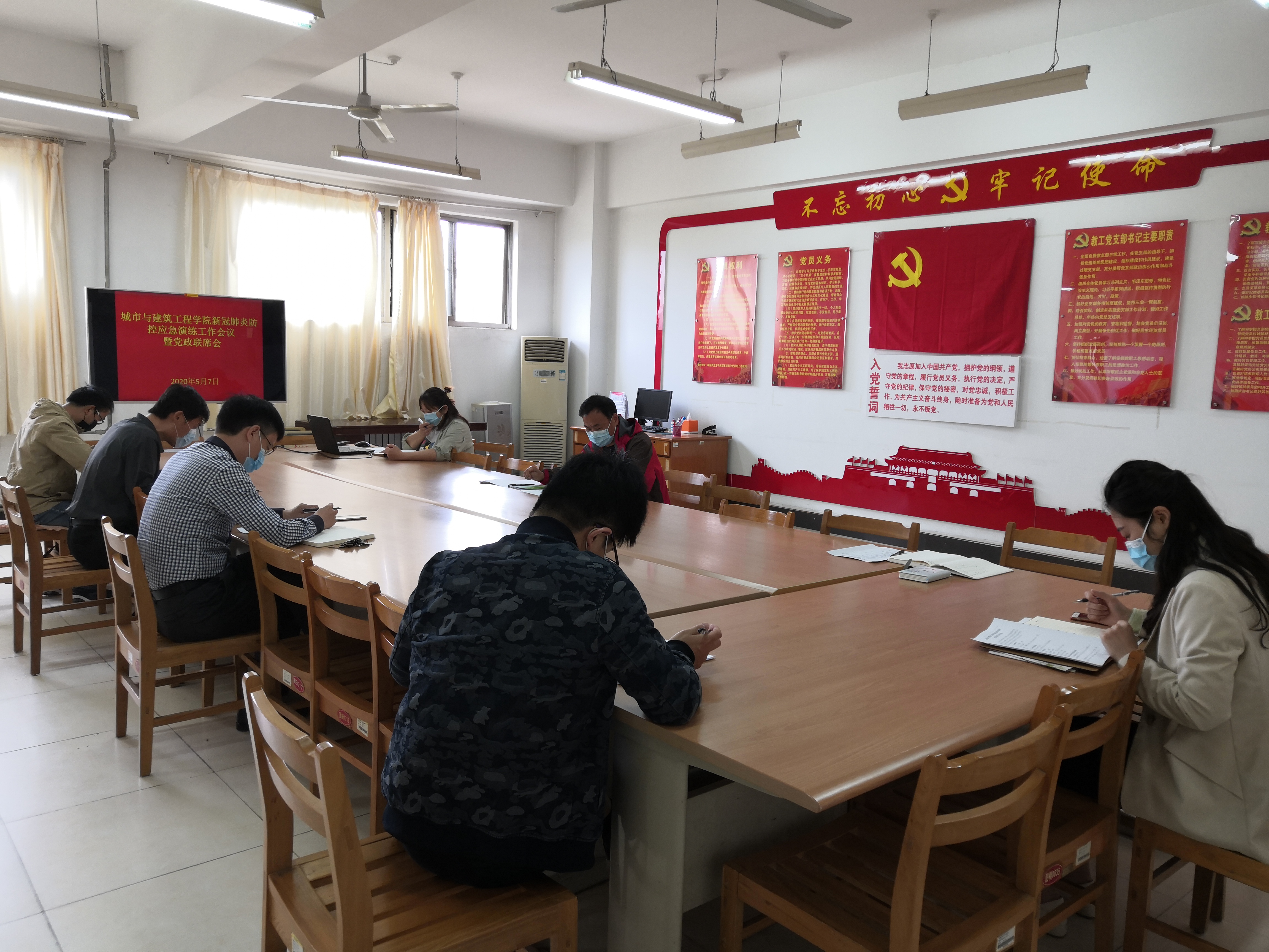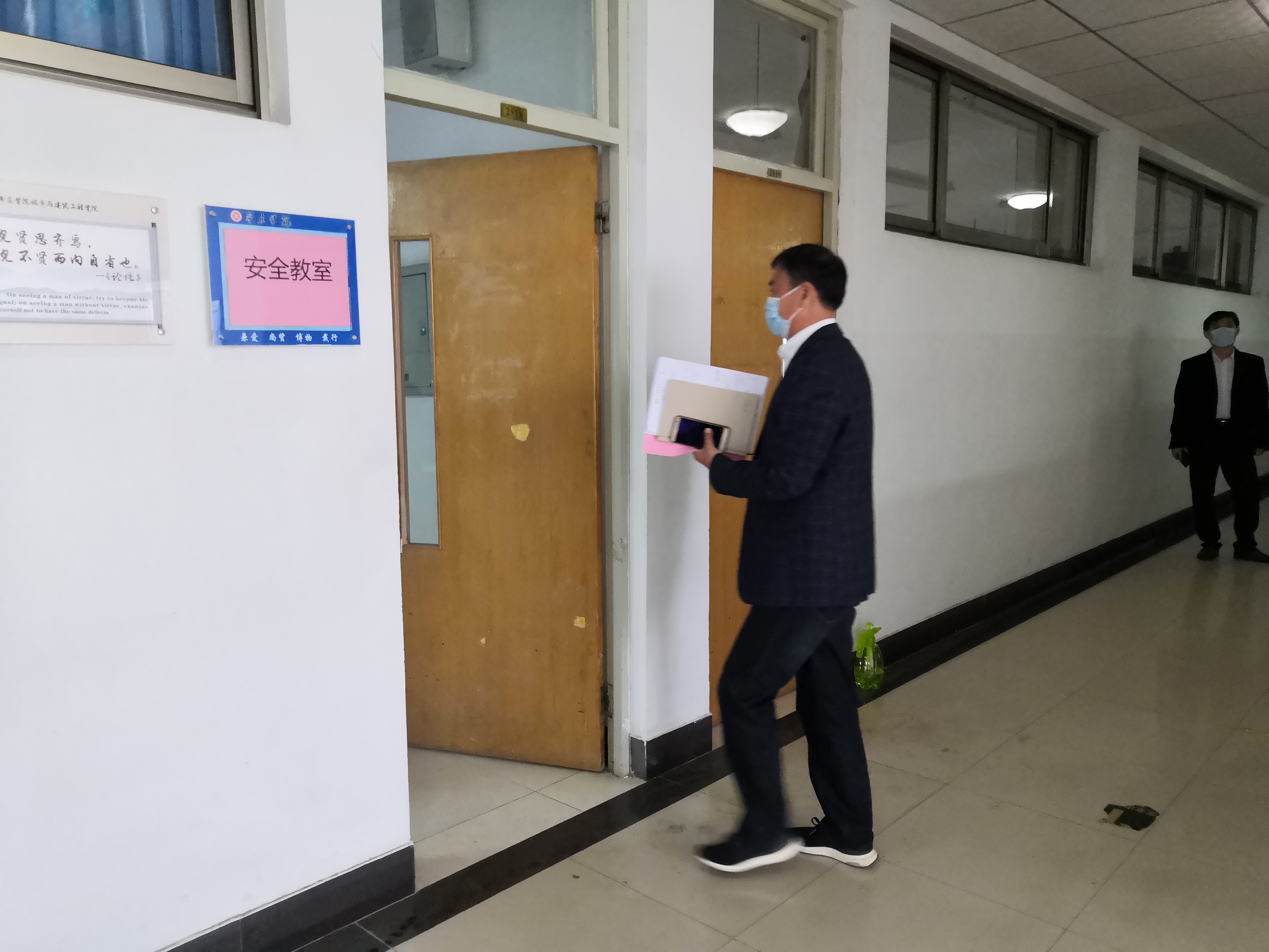 5月8日上午10点,演练正式开始。本次演练围绕教师上课期间学生发热及学生宿舍内发热两种场景两个场景展开,由学院新冠肺炎防控工作小组成员、部分教师按照应急演练方案分角色模拟演练。