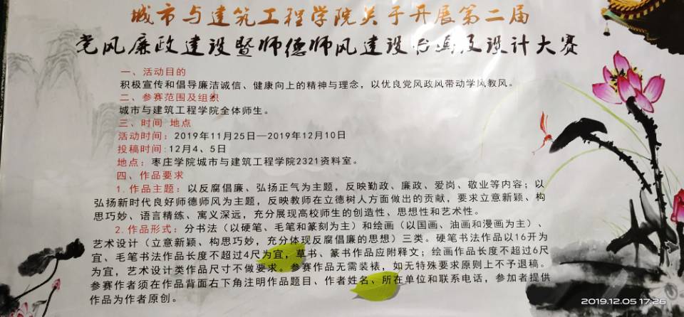 为进一步推进“不忘初心、牢记使命”主题教育往深里走、往实里走,丰富主题教育工作形式,强化廉政建设、师德师风建设,学院于11月25日至12月10日组织开展了beat365平台唯一官网第二届党风廉政建设暨师德师风建设书画及设计大赛。