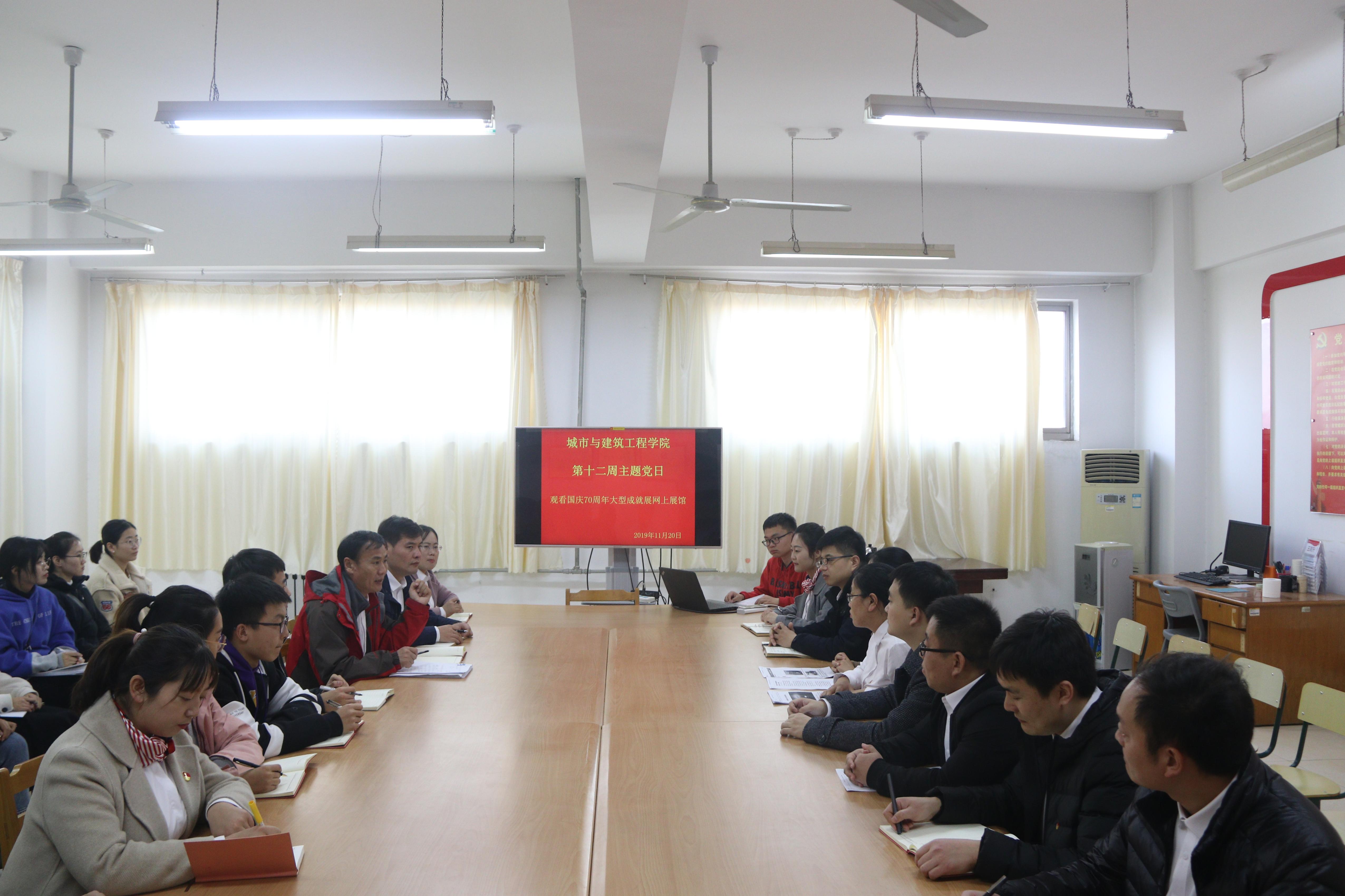 为扎实推进“不忘初心、牢记使命”主题教育,加强师生党员爱国主义教育、弘扬爱国主义精神,按照学校主题教育办公室下发的《关于组织党员参观国庆70周年大型成就展网上展馆的通知》精神,11月20日下午,城建学院在理工楼2321资料室组织全体师生党员集中观看了“新中国成立70周年大型成就展”网上展馆,学院全体党员参加了活动。