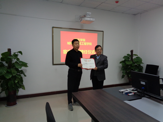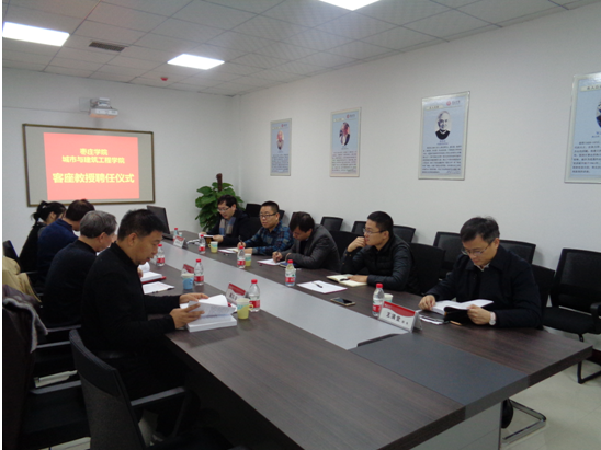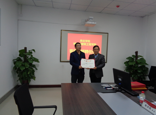 12月6日上午,beat365官网客座教授中科院水利部山地灾害与环境研究所博士生导师王全才教授、河北工业大学博士生导师黄达教授、河南省驻马店市公路局总工程师崔志波教授级高级工程师来校进行学术交流活动。校党委委员、副校长明清河教授为三位教授颁发了聘书。枣庄学院人事处处长孙晋选、城建学院党政领导及部分教师参加了此次活动,仪式由城建学院院长王满堂主持。