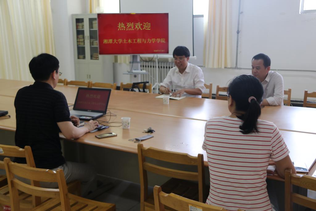 5月18日,湘潭大学土木工程与力学学院院长龙志林教授一行2人来beat365平台唯一官网考察交流。在beat365平台唯一官网资料室,龙院长就专业办学定位,近几年的发展情况等问题与学院领导教师进行了交流座谈。随后,龙院长针对行业中若干前沿热门问题为土木工程专业学生,进行了专题讲座。