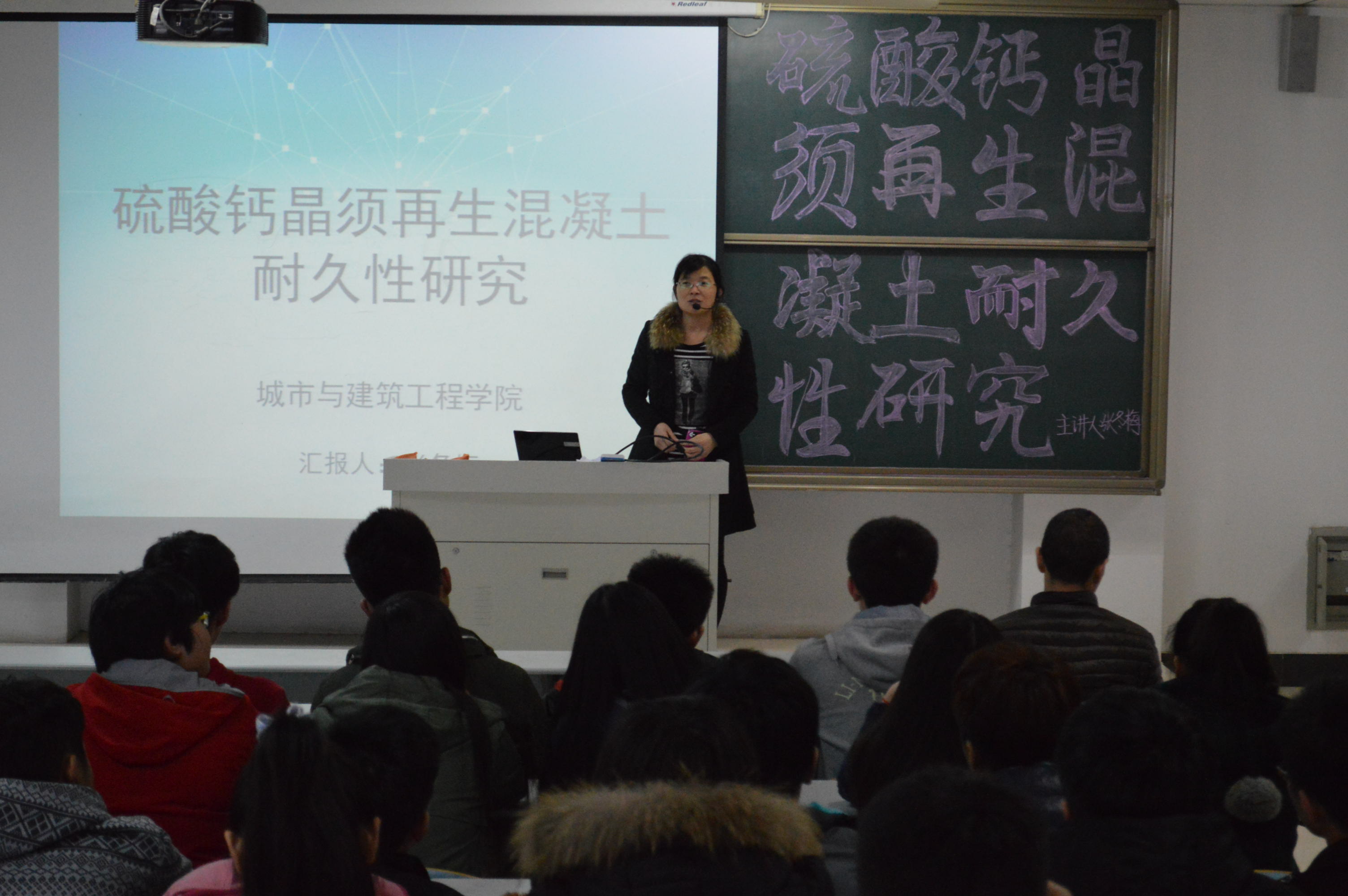 下午,beat365平台唯一官网张冬梅老师在理工楼2505教室作了题为“硫酸钙晶须再生混凝土耐久性研究”学术报告。部分专业教师和土木工程专业全体学生参加了报告会。