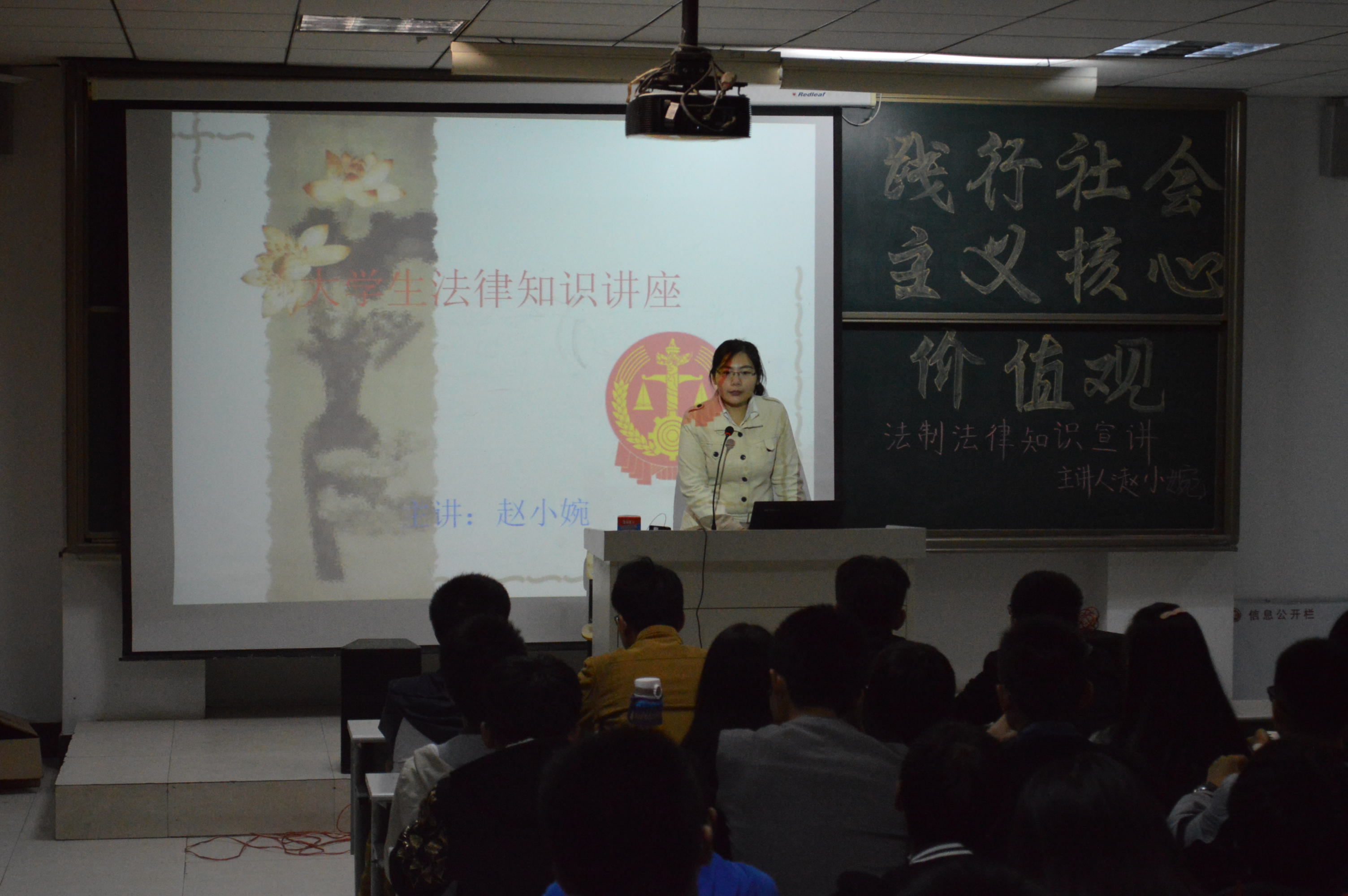 晚,城建学院在理工楼2505举行了法律法制知识讲座,赵小婉老师主讲,2014级新生、高年级部分学生参加了报告会。