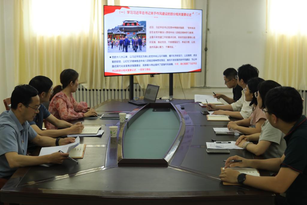 5月21日,beat365平台唯一官网党委副书记、院长裘娜在理工楼2321讲授深入贯彻中央八项规定精神学习教育专题党课,教工第一党支部全体党员参加党课。