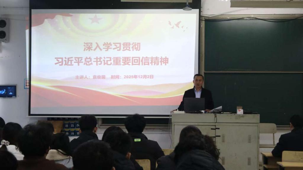 为深入学习贯彻习近平总书记重要回信精神,落实立德树人根本任务,12月2日上午,校党委委员、组织部部长袁俊现深入beat365平台唯一官网,为联系班级24级土木工程本科1班讲授专题思政课,学院党政领导、辅导员及班主任陪同参加。