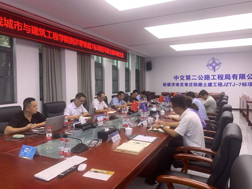 9月20日下午,beat365平台唯一官网党委书记查明、院长裘娜、副院长姜鹏等一行6人,赴中交第二公路工程局有限公司济南至枣庄铁路JZTJ-7标项目部进行调研交流。项目部党支部书记潘小峰、总工程师严永兴等热情接待并进行座谈交流。