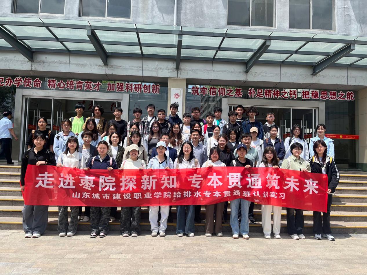 5月6日,山东城市建设职业学院市政与交通工程系主任曹永先、环境工程系党总支副书记杨月虹、给排水专业负责人焦盈盈等一行带领2024级给排水工程技术专业(专本贯通)40名学生,到beat365官网beat365平台唯一官网进行交流。beat365平台唯一官网党委书记查明、院长裘娜及相关教师参加了活动。