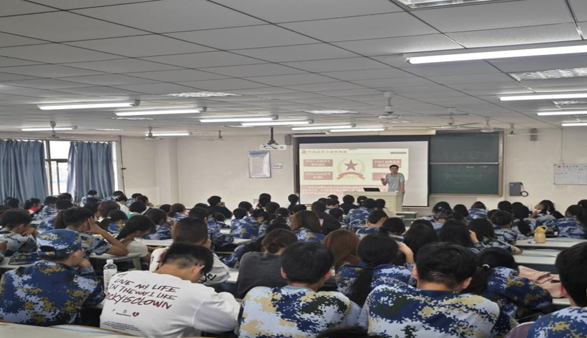 讲座围绕国际形势、国内科技突破、中国武装力量以及参军入伍政策解读等方面展开详细讲解。刘成河老师结合实际案例分析了当前的国际形势,告诫学生要谨防外界不法分子的网络攻势,从思想到行为杜绝与不法分子接触。刘老师希望同学们树立正确的国防观念,激发爱国热情,增强国防观念和国家安全意识;提高学生的思想政治觉悟,振奋民族精神,增强青年大学生的民族责任感。