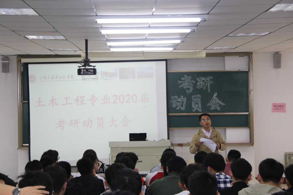 两个专业教研室主任分别总结了今年考研所取得的突破,希望在座各位认真做好考研计划,进行有效地复习,并且有信心、有决心、有恒心的坚持下去。动员会达到了预期目标,参会同学们纷纷表示,今后将更加坚定、踏实地投入到复习中,争取在明年考研中取得更大的辉煌。