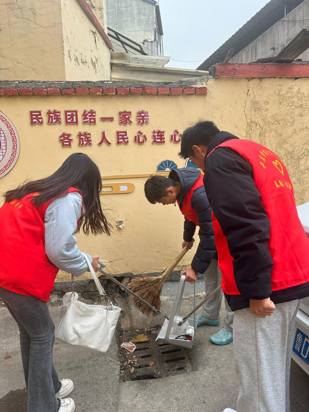 在志愿服务中,参与人员在社区中进行卫生打扫,清理街道垃圾,铲掉小广告等。本次志愿服务活动,是在学院老师与社区工作人员的监督和领导下进行的,为了安全起见由老师全程陪护。志愿服务结束后,清点人数并合影留念,收拾工具并归还。