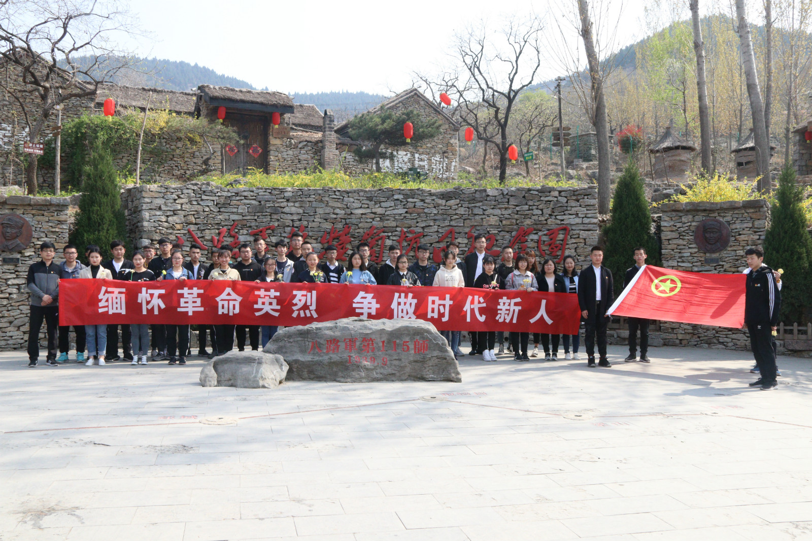 为缅怀革命先烈,传承民族精神,4月3日下午,beat365平台唯一官网、政治与社会发展学院共赴八路军抱犊崮抗日纪念园,联合组织开展了清明缅怀革命先烈活动。两院党员代表和团员代表参加了此次活动。