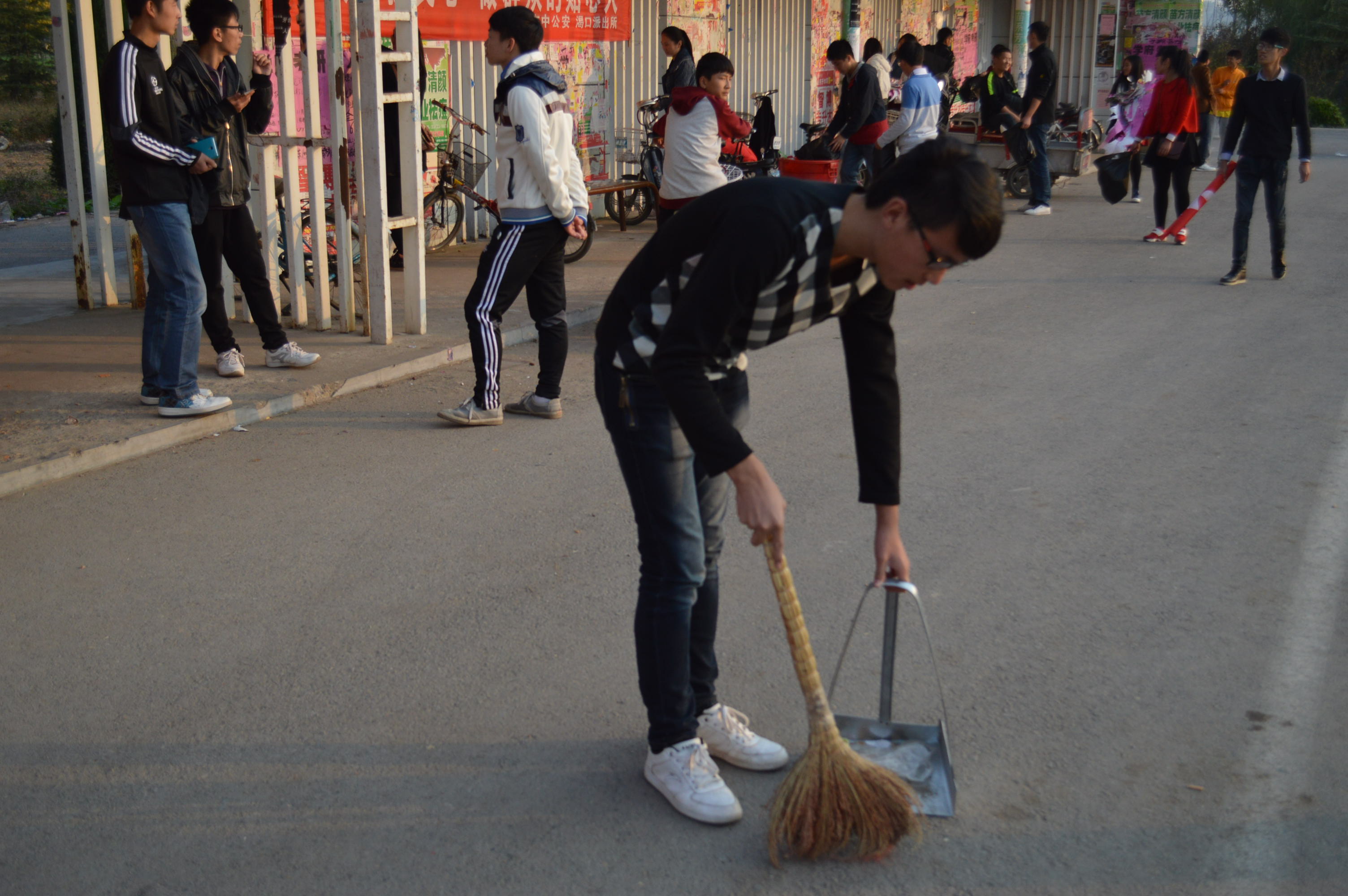 活动伊始,卫生部部长发言,强调保护环境是大学生义不容辞的责任,保护环境不是三分钟的热度,需要我们从日常小事做起,长久的坚持。我们牢记的不仅仅是相册里的美丽图片,而是我们身边和谐的环境。然后同学们分组开始义务清理校外垃圾,同学们用精心准备了白色环保袋按照既定路线开始清扫垃圾,对地上的饮料瓶,被随地乱扔的零食包袋,烟头和纸屑,悉数被大家收入垃圾袋,在经过大约三个小时的清扫后,地面焕然一新。