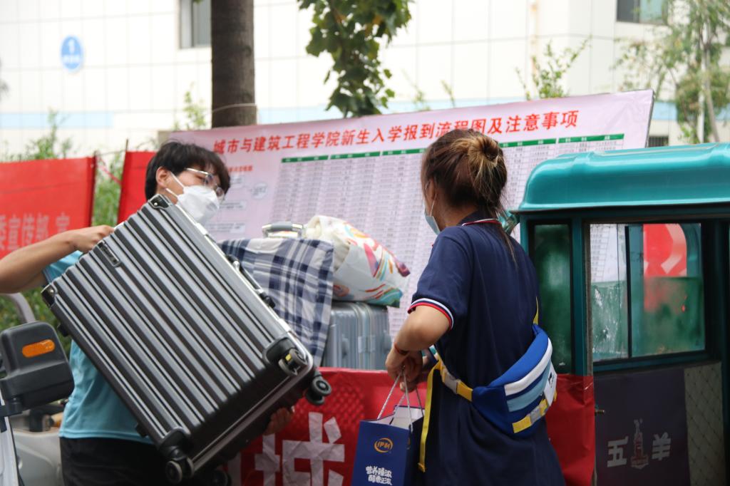 在初次迎新活动结束之后,beat365官网迎新服务队针对在迎新工作中出现的问题即刻进行汇总讨论、制定相关方案、做出人员工作调整,以保证本次迎新活动顺利开展。迎新工作如火如荼,到处都是忙碌的身影。随着新同学陆陆续续的到来,志愿者们迅速将他们引领至迎新点并帮助他们把行李寄存好,有条不紊的引领新生完成报到的所有程序,宿舍的接待也是井然有序的,志愿者负责将每一名到来的新生送到宿舍,安置好之后离开。接送路上,迎新服务队的学长学姐们不厌其烦地给新生回答着他们提出的各种问题。不少学长学姐主动帮着拎行李,一路谈笑风生,人头攒动,秩序井然。