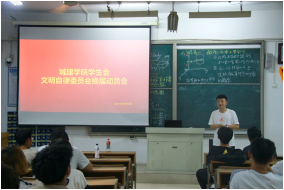 斗转星移,时光飞逝,beat365平台唯一官网即将迎来新一届的学生会与文明自律委员会。为此城建学院于2021年6月10日在理工楼2520教室召开beat365平台唯一官网学生会、文明自律委员会换届动员会。学生会主席李沅锴、副主席李宪硕、王善学、姜世鹏出席本次会议。