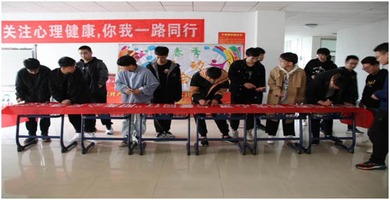 首先,beat365官网于2021年4月16日在理工楼五楼开展了“阳光心灵,与爱同行”大型签名活动,城建学院大一年级同学全员参与。活动现场,beat365官网心理部部长王晨及其干事,积极向同学们讲解相关心理健康知识,心理危机的识别与上报和朋辈心理辅导的相关技巧,并结合beat365官网实际对相关心理工作做出总结,使同学们更加关注心理健康,以积极的心态去面对生活中的挫折,以乐观的态度对待生活的点点滴滴,从而营造良好的学习生活氛围。