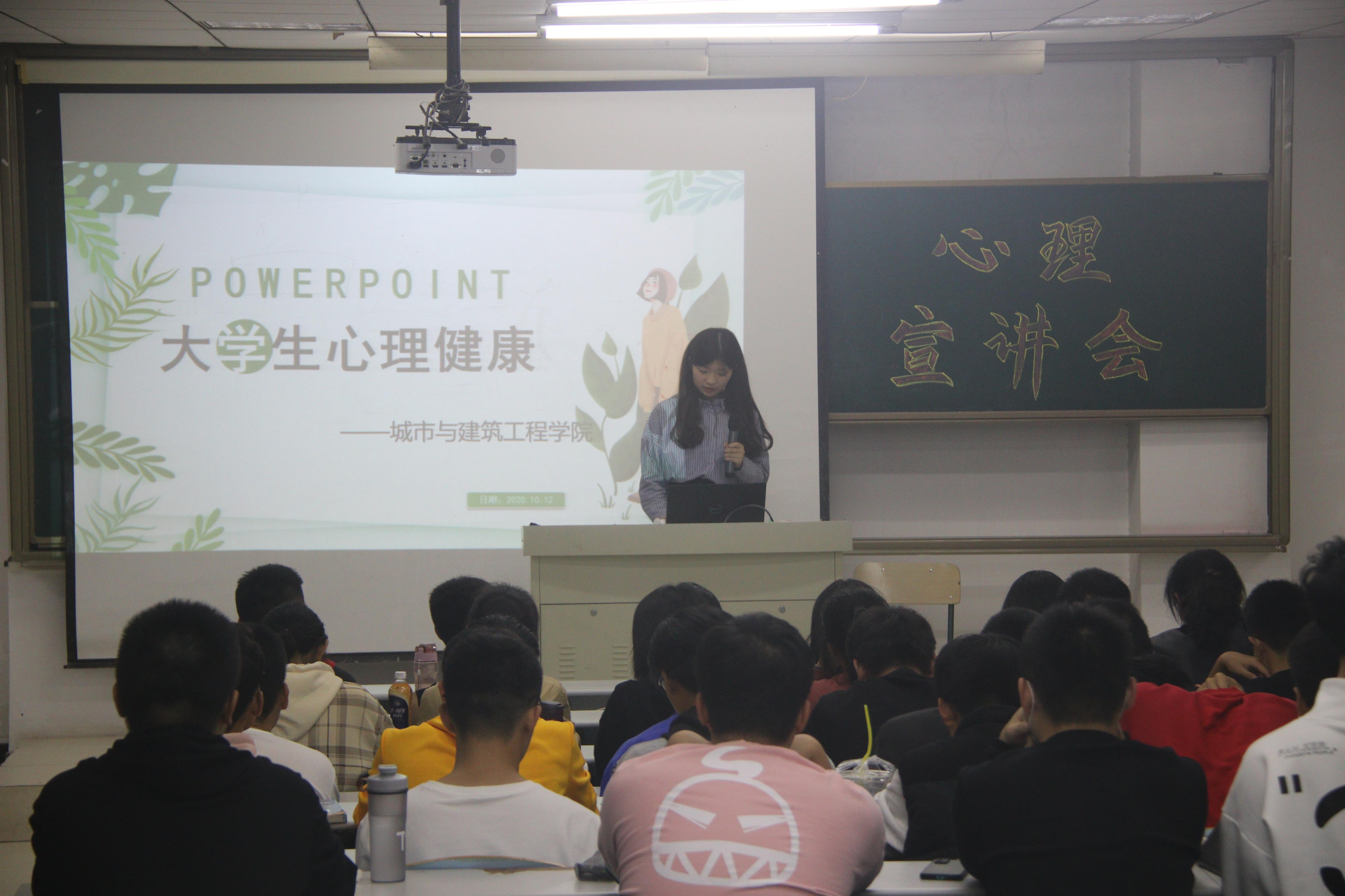 为更好的宣传与普及心理健康知识,使学生意识到心理健康的重要性,营造一种积极关注个体成长、自觉维护心理健康的校园氛围,提升新生的心理素质和班级凝聚力。beat365平台唯一官网于10月12日晚上19:00在理工楼2505组织召开大学生心理健康宣讲会,2020级全体学生参加了本次宣讲会。
