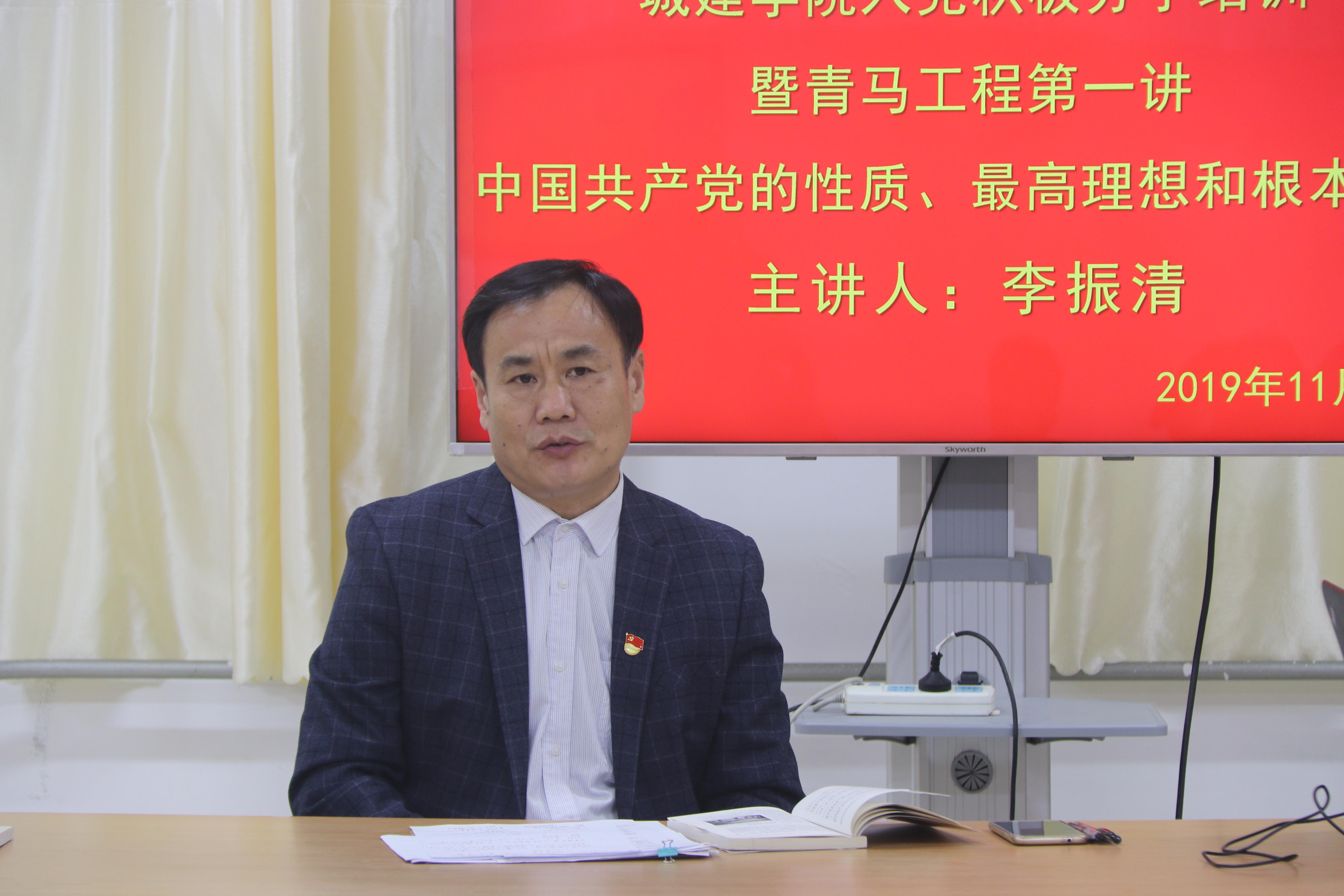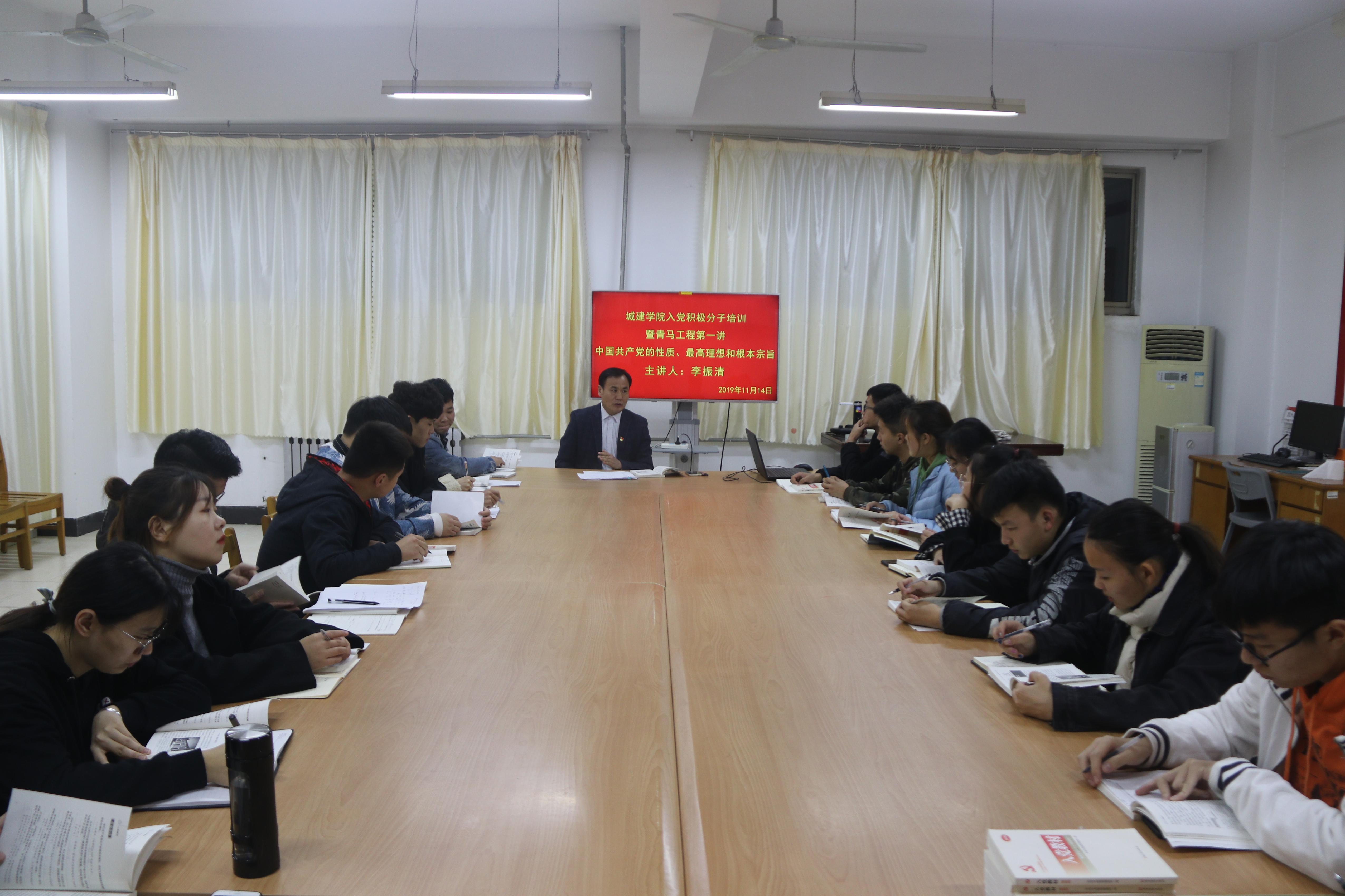 11月14日晚,beat365平台唯一官网在资料室2321开展了2019年下半年入党积极分子党课培训的第一讲。学院党总支书记李振清主讲,2019年下半年入党积极分子、部分学生干部参加了此次培训。