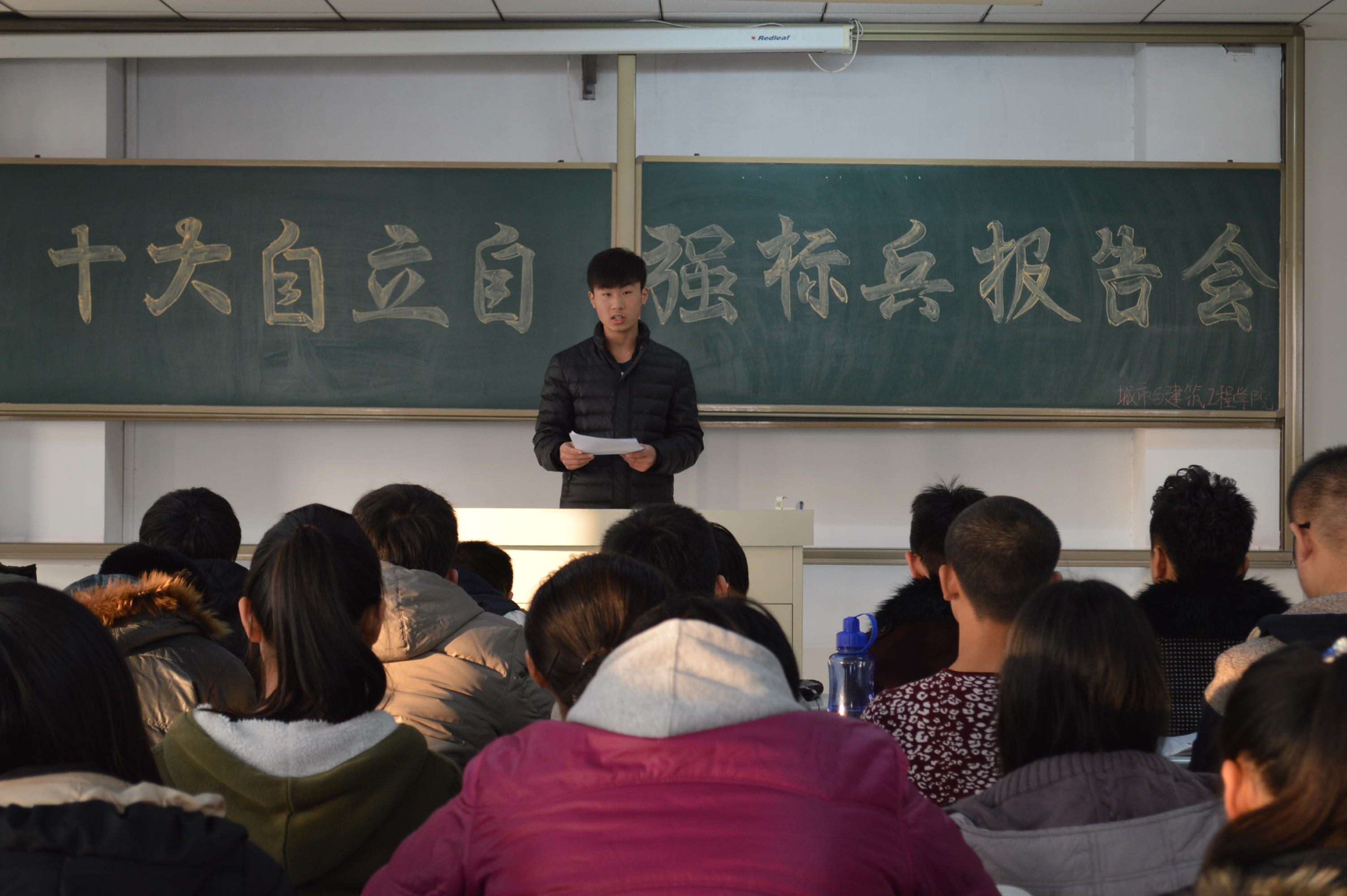 为了激励同学们自立自强,拼搏进取,12月30日下午,城建学院在理工楼2505举行了“十大自立自强标兵报告会”。报告会由王亚洁主持,全体大一新生参加了本次报告会。