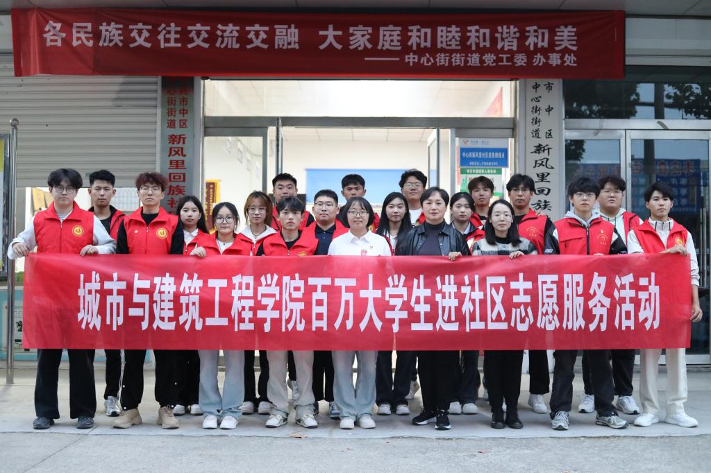 为深入学习贯彻党的二十届三中全会精神,引领广大青年学生走向社会、走向基层,拓宽优秀青年人才成长成才渠道。10月26日,枣庄学院beat365平台唯一官网志愿服务队前往枣庄市市中区中心街街道新风里回族社区,开展“百万大学生进社区”志愿服务活动。学院团委书记裴娴哲、专职辅导员张萍萍带队,中心街街道团工委副书记陈淑婷、新风里回族社区党总支书记石鑫出席活动。