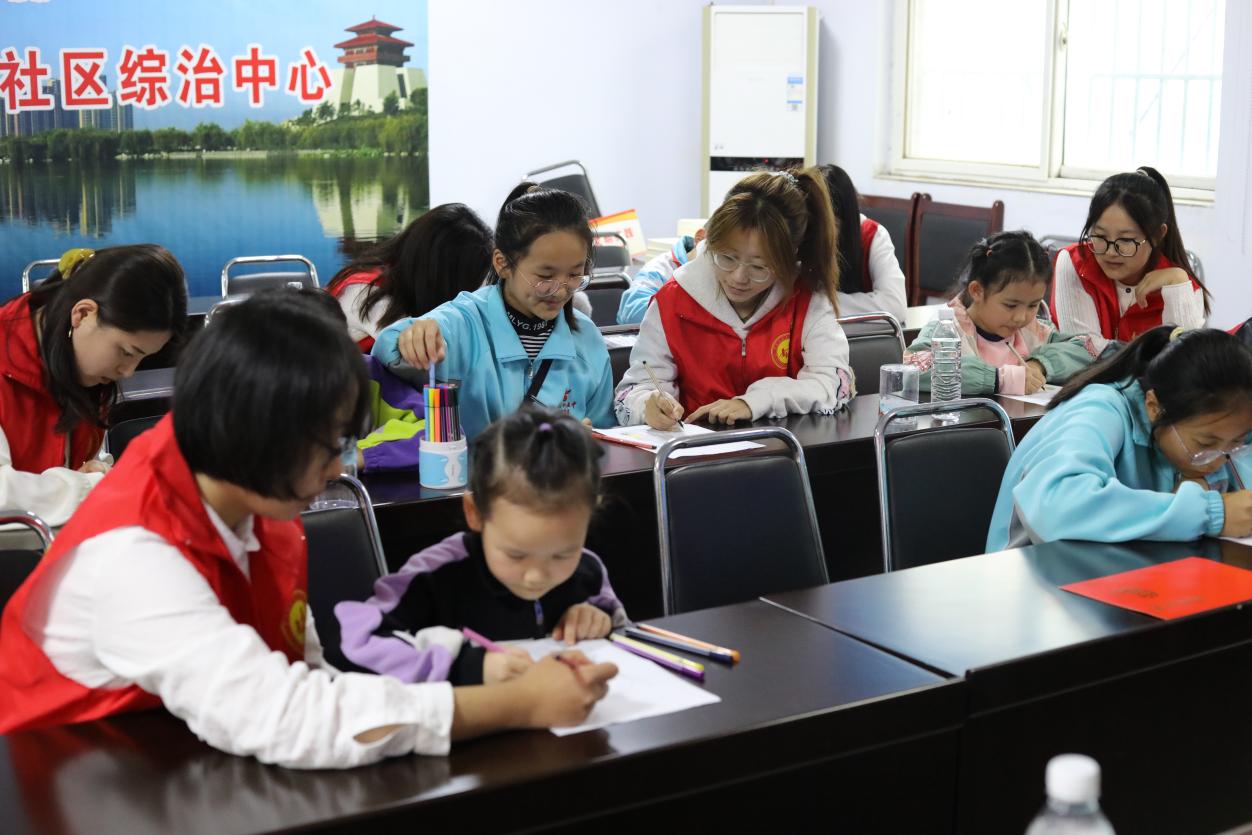 志愿者带领社区儿童和家长开展了建筑绘画趣味涂鸦活动。活动现场热闹非凡,志愿者和孩子们围坐在一起,共同构思绘画内容,从色彩的搭配到图案的设计,志愿者充分发挥自己的引导作用,鼓励孩子们大胆地拿起画笔,释放自己的想象力,整个活动充满了欢声笑语。