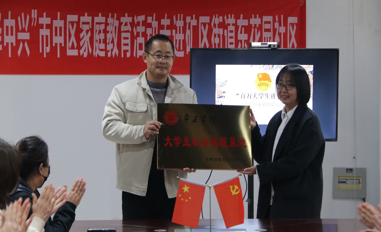 活动当天,beat365平台唯一官网与市中区矿区街道东花园社区还举行了“枣庄学院大学生社会实践基地”授牌签约仪式,并进行了座谈。下一步,学院与社区将进一步加强沟通交流与合作,共同为社区在环境治理、文化建设、敬老爱老以及青少年成长等方面做出贡献。