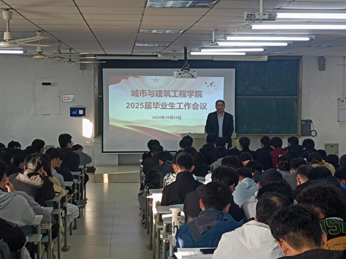 10月24日下午,学院召开了2025届全体毕业生会议,针对毕业实习、毕业设计等工作进行了详细安排,讲解了就业工作的相关注意事项,对就业资源、应聘求职、签约注意事项等问题进行了说明。