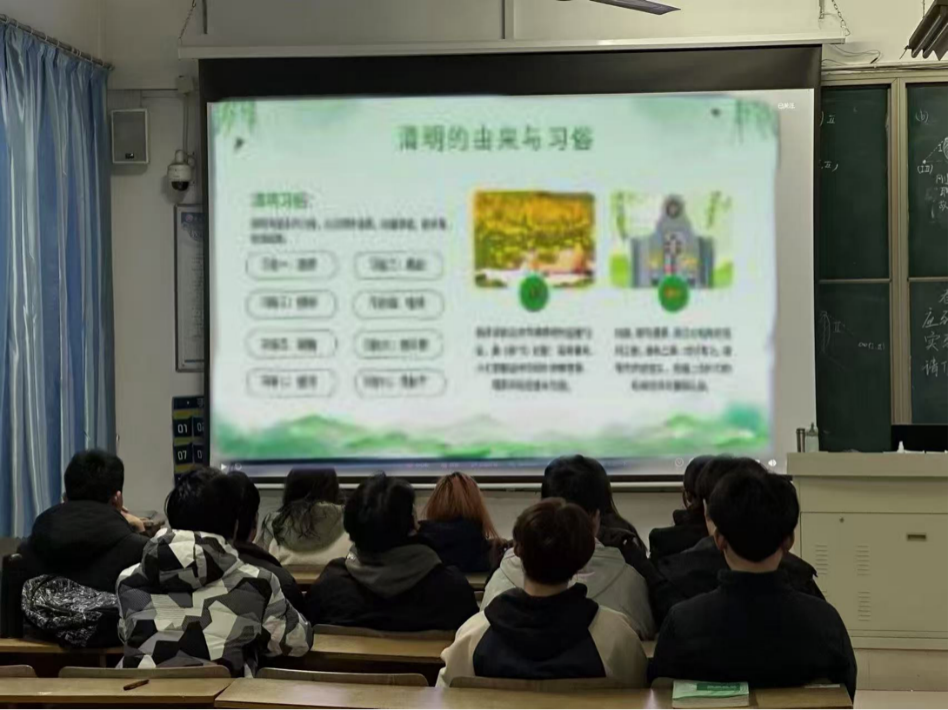活动伊始,各班团支部各展所长,通过多元形式深入探寻清明文化的深厚内涵,为同学们系统梳理了清明节的历史渊源、传统习俗,深入讲解了清明节对于传承民族精神、铭记历史的重要意义。在 “先辈事迹分享” 环节,同学们踊跃上台,讲述革命先烈们的英勇事迹。随后的 “清明文化知识问答” 环节,同学们积极抢答,现场气氛热烈。最后,组织观看了红色纪录片,让同学们更加直观地感受先辈们的奉献精神和家国情怀。