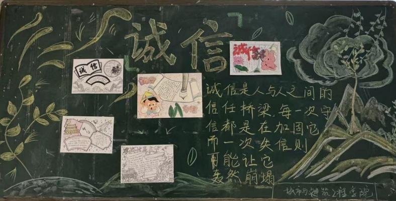 此外,学院组织学生开展了诚信主题文化创作活动,精心策划并设计了系列手抄报与黑板报。同时,学院还制作了诚信主题宣传横幅,巧妙地将“以诚立身”“言而有信”等经典诚信标语融入其中,并将其悬挂在教学楼及公共区域,以更加直观的视觉化呈现方式传递诚信价值观,进一步增强了此次诚信主题教育活动的效果,为学院诚信文化建设注入了新动力。