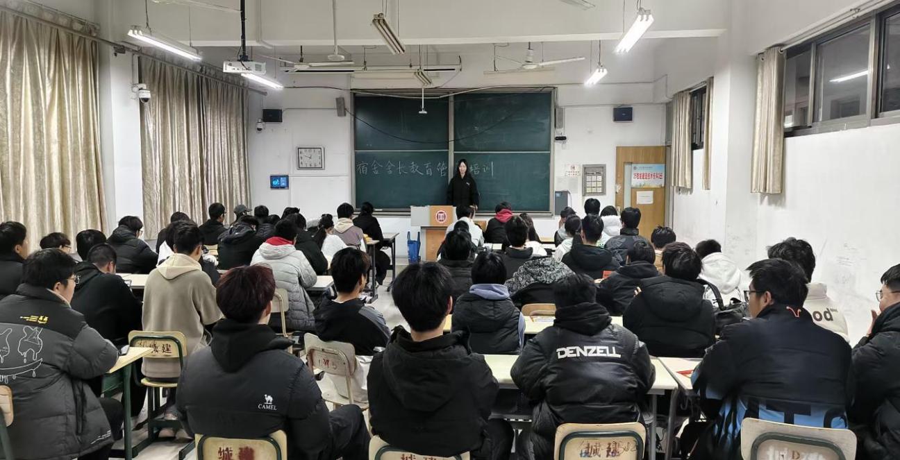 活动围绕宿舍安全管理展开专题讲解,结合典型案例,重点强调了用电安全、消防安全和财产安全等内容,进一步明确了舍长在隐患排查、信息上报及应急处置等方面的职责。培训提出“团结互助、文明和谐”的建设理念,鼓励舍长主动发挥沟通纽带作用,积极化解矛盾,营造积极健康的宿舍氛围。此外,培训还针对宿舍卫生检查标准、考勤制度落实等日常管理事项作了详细说明,并在互动问答环节中,现场解答了舍长们在工作中遇到的实际问题。