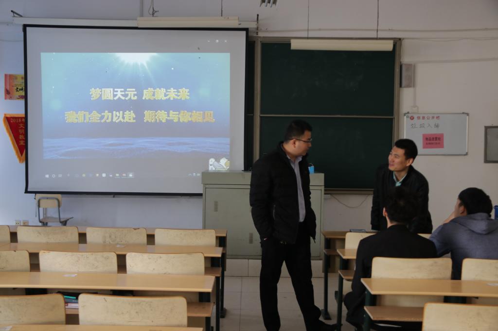会议开始,由学院就业指导老师张志刚致辞,并对目前毕业生面临的就业环境做了简要说明。随后,招聘会负责人以视频和简报的形式就公司的注册地址,规章制度,企业文化,现有资质认证,仪器设备,组织构架,人力资源政策等多个方面向同学们做了简单介绍,并就实习期员工的福利待遇做了明确解释。其后,招聘会负责人对公司的细节进行了更为精细的阐述。最后,同学们积极踊跃的提出自己的问题与疑惑,招聘会负责人耐心的进行现场解答。企业方表示真诚的邀请同学们加入天元,实现自己的梦想!